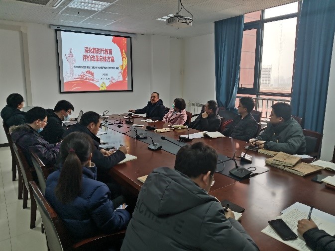 之后,尹忠刚副院长在做了《深化新时代教育评价改革总体方案》的专题党课,指出该方案是新中国第一个教育评价系统性文件,是指导深化新时代教育评价改革的纲领性文件,《深化新时代教育评价改革总体方案》的颁布实施为高校全面贯彻党的教育方针,破除“五唯”顽瘴痼疾,引导全党全社会树立科学的教育发展观、人才成长观、选人用人观具有重大意义。尹忠刚副院长分别对《总体方案》的导语、总体要求、重点任务、组织实施四大板块进行了阐述,特别是在重点任务板块中,针对五类主体、五个方面的22项重点改革任务,结合高校的工作实际进行了重点解读。