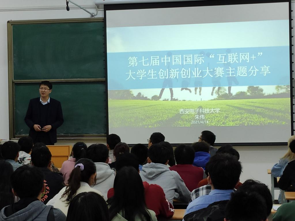 朱伟老师对“互联网+”大赛办赛历史、比赛形式和竞赛目的进行了讲述,随后结合自身参赛和竞赛指导经验向同学们指出,创新创业大赛能够有效提升学生综合素质,同学们必须尽早着手、确定目标、整合资源、组建团队、认真打磨,在实践中练就“十八般武艺”,在竞赛中不断提升自身能力。