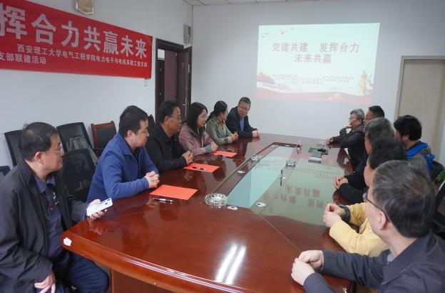 为实现基层党组织优势互补,促进党建业务双融合,充分发挥基层党组织和广大党员在推动行业发展、凝心聚力等方面的先锋带头作用,努力构建“资源共享、优势互补、互相促进、共同提高”的党建工作新格局,电气工程学院电力电子与电机系教工党支部与西安市电源学会党支部、瑞志电源公司党支部于2023年11月4日联合开展支部共建活动。
