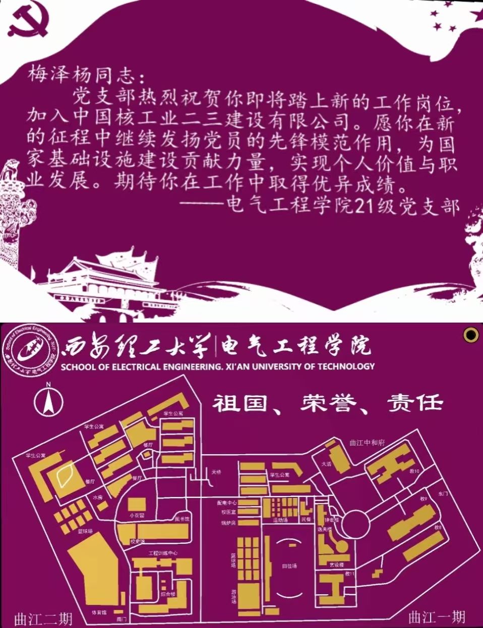 为传递组织关怀,激励支部党员成长,支部指导老师刘晨雪、魏书妍对2024年秋季学期保研、就业的先锋党员进行表彰,并赠送了支部党员自主设计定制的PCB贺卡,将电气元素融入人文关怀中,希望全体党员发挥先锋模范作用,带动更多同学共同进步。